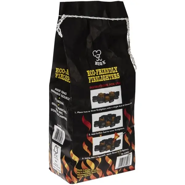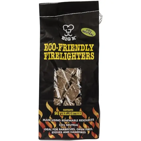 De Big K milieuvriendelijke aanmaakblokjes maken het eenvoudig om houtskool aan te steken zonder de smaak te beïnvloeden door chemische toevoegingen. Deze blokjes zijn CO2-neutraal en branden op hernieuwbare plantaardige was, waardoor ze duurzaam en veilig in gebruik zijn. Ze zijn ideaal voor barbecues, open vuur, kachels of kampvuren. Het pakket bevat 96 aanmaakblokjes met een totaalgewicht van 0,65 kg. Deze blokjes zorgen voor een milieuvriendelijke en praktische manier om een vuur aan te steken zonder chemische resten.