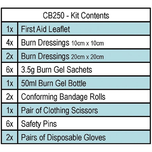 Hoge kwaliteit verbandmiddelen voor directe toepassing op brandwonden. Deze set bevat gels, verband en andere bijkomende zaken voor effectieve eerste hulp bij lichte tot ernstige brandwonden.