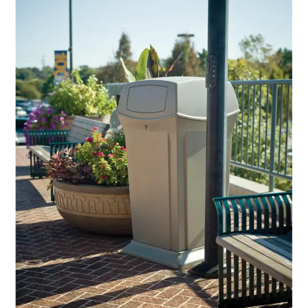 De Rubbermaid RANGER is een vierkante afvalbak van hoogwaardig kunststof met een inhoud van 170.3 liter. Voorzien van twee inworpopeningen met pushklep, waardoor afval hygiënisch kan worden gedeponeerd.