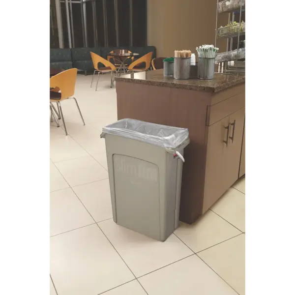 Je gebruikt deze kunststof SLIM JIM afvalbak voor efficiënt afvalbeheer. De geïntegreerde luchtsleuven zorgen ervoor dat je minder trekkracht nodig hebt bij het verwijderen van de afvalzak.