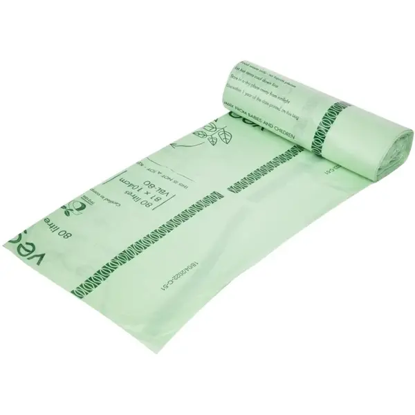 De Vegware Biobag composteerbare afvalzakken van 80 liter zijn ideaal voor een milieuvriendelijke afvalstroom van voedselresten en ander composteerbaar afval. Gemaakt van het plantaardige materiaal Mater-bi, zijn de zakken binnen 12 weken industrieel composteerbaar en vervuilen ze het composteerproces niet, waardoor je afvalverwerking volledig circulair wordt.