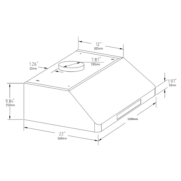 Afzuigkap | Schuin Model | Incl. Motor | 1530m³/u | Regelaar + Verlichting | 1200x560x250(h)mm