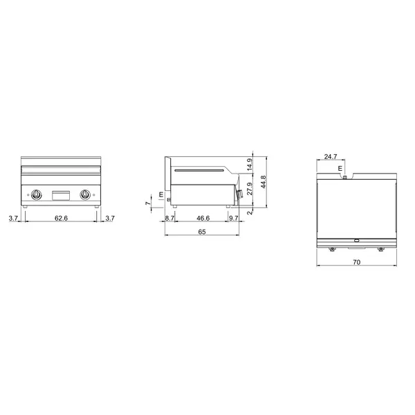 Bak-/Grillplaat | FUN 650 | Elektrisch | Glad/Gegroefd Oppervlak 696x520 (Staal) | 9kW (400V) | 700x650x448(h)mm