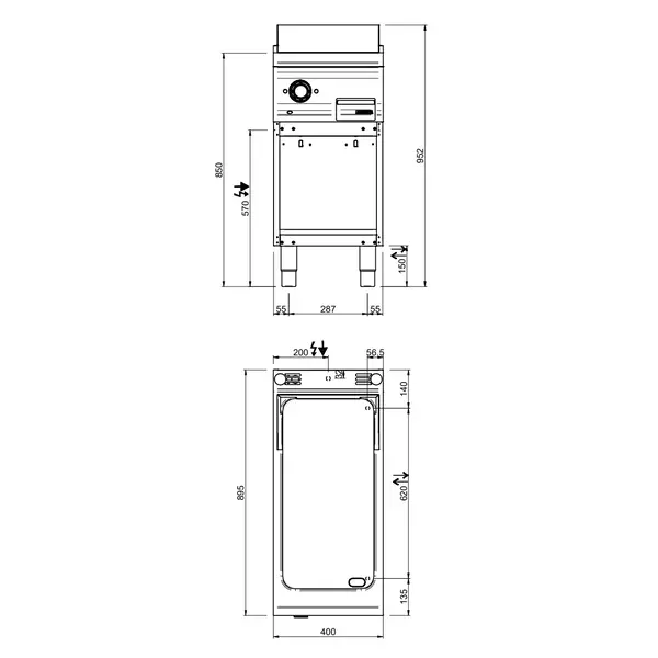 Bak-/Grillplaat | OPTIMA 900 | Elektrisch | Gegroefd Oppervlak 380x720 (Gietijzer) | 50°C/300°C | 7kW (400V) | Open Onderkast | 400x700x850/877(h)mm