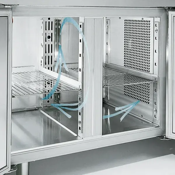 De koelwerkbank kan daarbij ook in zéér warme ruimten worden gebruikt, zelfs tot maximaal 40°C.