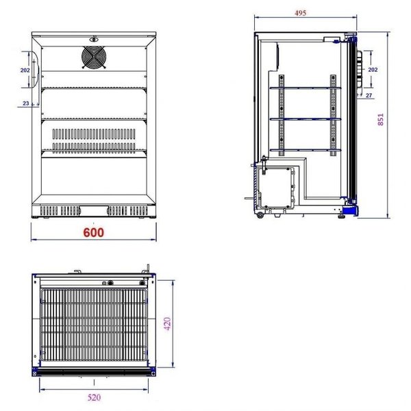 Barkoelkast | 128L | Zwart | 0°C/+10°C | Statisch + Ventilator | 600x520x850(h)mm
