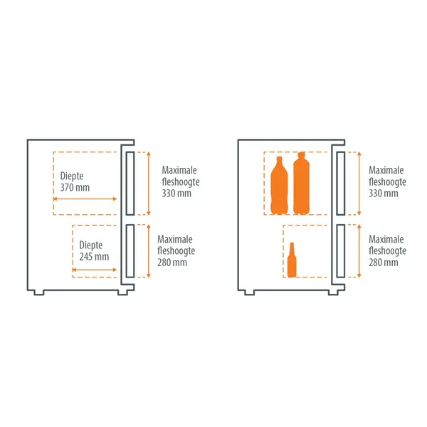 De barkoelingen hebben een digitaal instelbaar en zeer ruim temperatuurbereik van +2°C/+18°C - met ECO-modus voor nóg meer energiebesparing - en de geforceerde koeling zorgt voor optimale temperatuurverdeling en snel temperatuurherstel na openen, ook bij intensief gebruik.