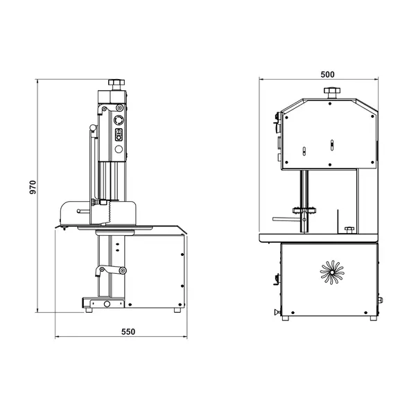 Beenderzaag | Zwart | Werkoppervlak 700x650 | Werkhoogte 350 | 1.1kW (230V) | 670x620x1150(h)mm