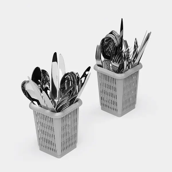 Let op, de productafbeelding met 2 inzetten en met vaatwasser en vaatwaskorf dienen ter illustratie; dit betreft alleen de bestekinzet, welke per stuk wordt verkocht.