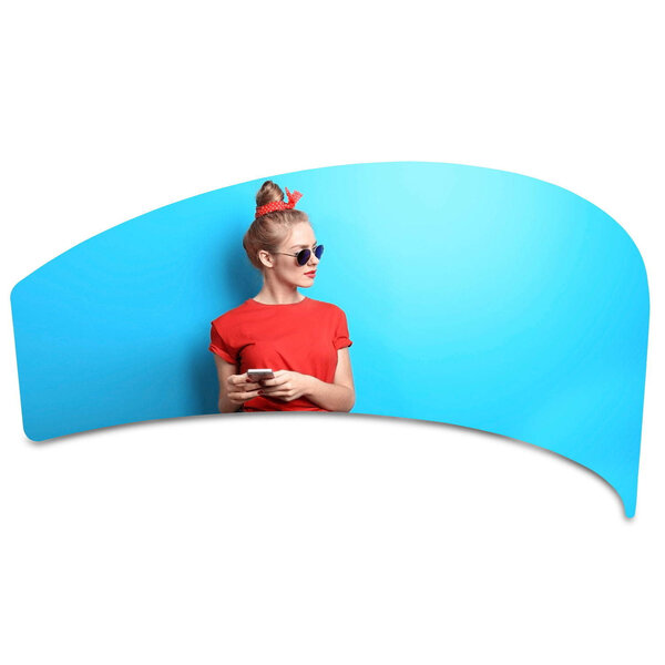 Op de ATLANTIS standaarden kunnen in 2 lagen gedrukte prints heel eenvoudig 'als een sok' over het frame worden getrokken, zodat zonder moeite voor elke beschikbare vorm uit de serie eenzelfde type print kan worden gebruikt. Deze volgt dan vanzelf de vorm van het frame en creëert op een eenvoudige manier een aantrekkelijke printwand.