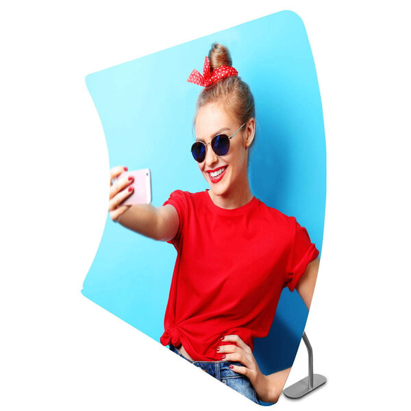 Op de ATLANTIS standaarden kunnen in 2 lagen gedrukte prints heel eenvoudig 'als een sok' over het frame worden getrokken, zodat zonder moeite voor elke beschikbare vorm uit de serie eenzelfde type print kan worden gebruikt. Deze volgt dan vanzelf de vorm van het frame en creëert op een eenvoudige manier een aantrekkelijke printwand.