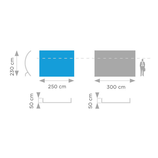 Let op, wanneer deze U-vorm uitvoering dubbelzijdig wordt gebruikt, blijven de poten aan de achterzijde zichtbaar. Afbeeldingen met een beprint doek dienen ter illustratie; een doek is niet bijgesloten en wij beschikken niet over een printservice.