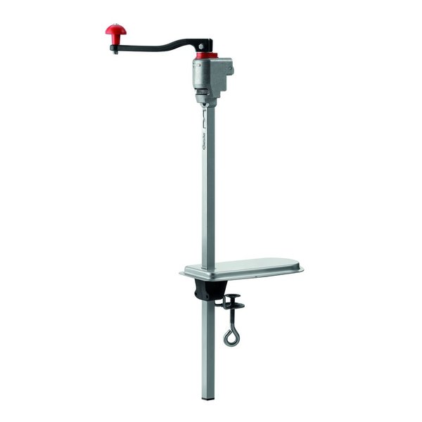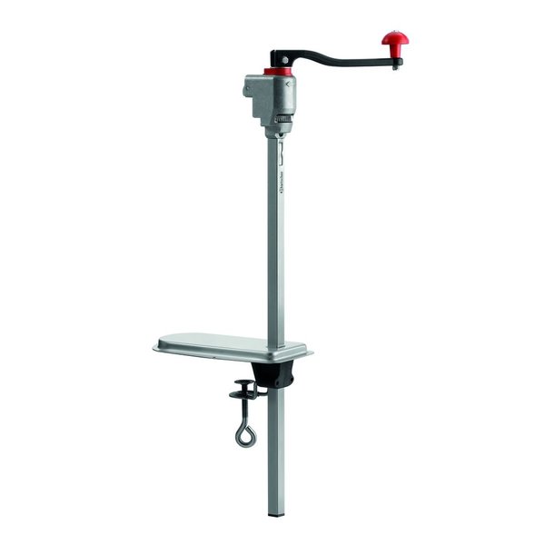 - De in hoogte verstelbare tafel-blikopener maakt het mogelijk om zelfs bijzonder grote blikken tot een hoogte van 56,5 cm te openen. De draaiaandrijving met veermechanisme maakt een eenvoudige en gebruiksvriendelijke bediening mogelijk.