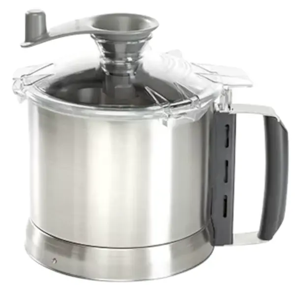 Deze 'Blixer' van Robot Coupe is de ideale oplossing voor de allerfijnst getextureerde gerechten, speciaal voor zorginstellingen met cliënten die problemen hebben met kauwen/slikken. Met dit apparaat maak je alle voedingsmiddelen, rauw of gekookt, geschikt voor alle eters, ideaal voor de wat kleinere porties. Bovenop de RVS kuip zit een demonteerbare 'Soft Touch' handgreep waarmee je de schraaparm bedient, voor optimale fijnheid en gelijkmatigheid. De deksel is waterdicht om morsen te voorkomen, en maakt het mogelijk om tijdens de bereiding nog ingrediënten toe te voegen.
