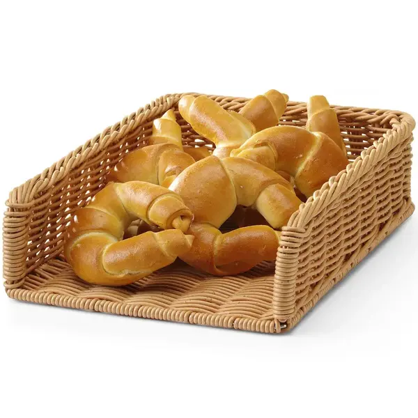 Deze HENDI broodmand is dankzij het royale formaat en de opening aan één zijde ideaal voor het presenteren van broodjes, baguettes en andere gebakjes in bakkerijen, supermarkten en op buffetten. Gemaakt van duurzaam polyrattan en extra verstevigd met een frame van hoogwaardig RVS, combineert de mand een natuurlijke uitstraling met stevigheid. De open zijde maakt het eenvoudig om brood te pakken, en de mand is gemakkelijk schoon te maken en geschikt voor de vaatwasser.