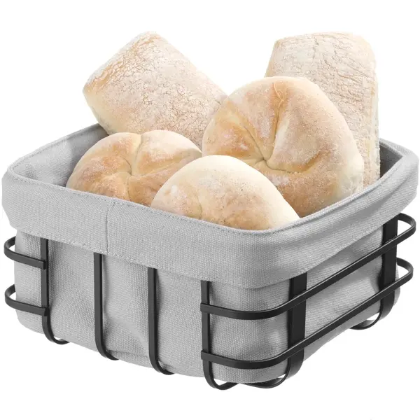 De vierkante broodmand van HENDI is afgewerkt met een matzwarte poedercoating en voorzien van een grijze, wasbare voering. Geschikt voor het presenteren van verschillende soorten brood of lekkernijen, met een moderne en functionele uitstraling.
