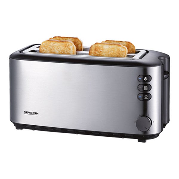Deze praktische broodrooster van SEVERIN is onder andere voorzien van een ontdooistand, een opwarmstand zonder extra bruining en een stoptoets. Het apparaat beschikt over 2 extra lange sleuven die ieder ruimte bieden aan 2 normale broodsneden, met geïntegreerde broodjesopzet.