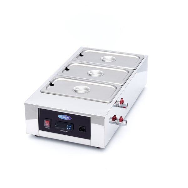Deze roestvrijstalen chocoladesmelter is uitgerust met drie 1/3 GN containers met een diepte van tien centimeter, ideaal voor het snel en gelijkmatig smelten van chocolade zonder verbranding. Het apparaat werkt volgens het au bain marie principe waarbij verwarmd water zorgt voor een constante en nauwkeurige temperatuurregeling tussen drie en honderd graden Celsius. De chocoladesmelter heeft een digitaal display met aan-/uitknop en pijltjestoetsen om de temperatuur per graad in te stellen. Een indicatorlampje geeft aan wanneer de gewenste temperatuur is bereikt. Het apparaat is voorzien van een tapkraan voor het eenvoudig legen van de watertank en een stoomafvoerklep om stoom af te voeren. De GN containers worden op hun plek gehouden door twee tussenbruggen en kunnen tot circa vier kilo chocolade bevatten. Na gebruik kan de chocoladesmelter worden schoongemaakt door de GN containers en deksels met warm water en een mild schoonmaakmiddel te reinigen. De buiten- en binnenzijde van het apparaat kan worden afgenomen met een vochtige doek. Deze chocoladesmelter is geschikt voor het smelten van pure en melkchocolade, waarbij de temperatuur nauwkeurig kan worden geregeld om verbranding te voorkomen.