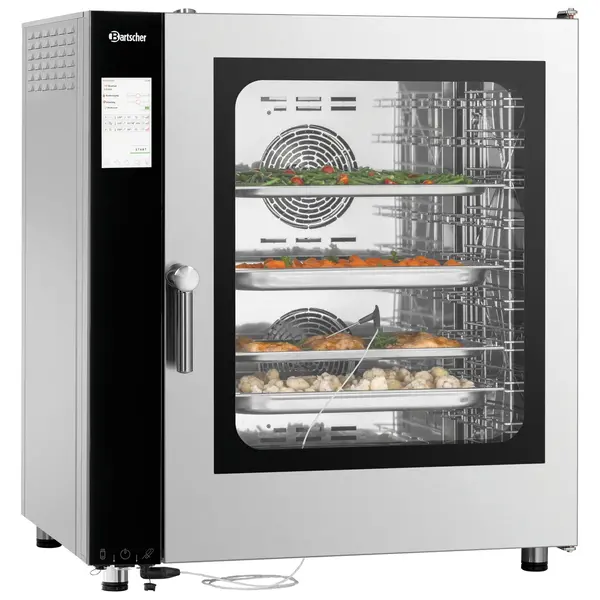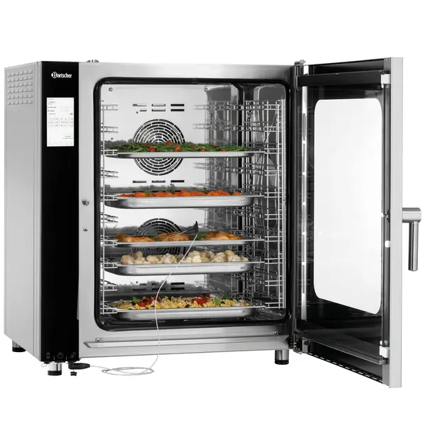 Deze Bartscher combisteamer Silverstream2 met 10 slots in 1/1 GN-formaat overtuigt door zijn geïntegreerd reinigingssysteem. Met of zonder kernthermometer - de elektronische bediening maakt een op behoeften gebaseerde regeling van alle gaarprocessen mogelijk. Met de rack-controlefunctie kunnen verschillende gerechten met verschillende tijden worden bereid.