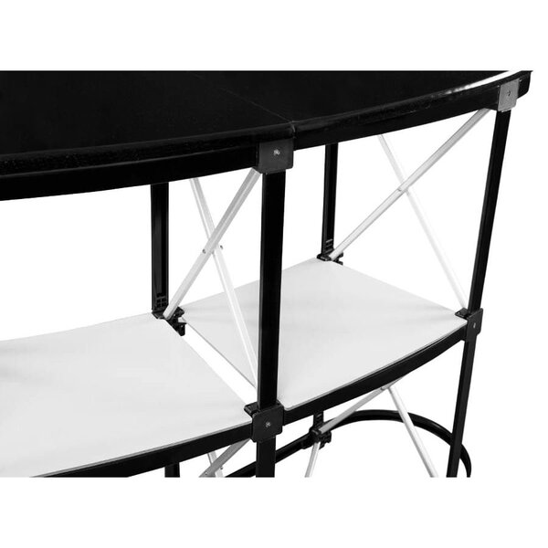 Het praktische pop-upsysteem zorgt dat het frame van de counter snel en zonder gereedschap kan worden uitgevouwen. De constructie van hoge kwaliteit stalen onderdelen met strakke poedercoating en een elegant, gelakt balieblad zorgen voor een hoogwaardige uitstraling.