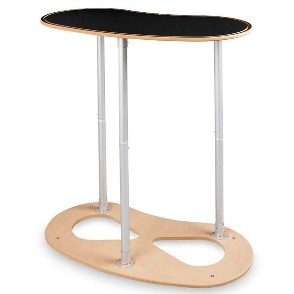 De prints zijn eenvoudig verwisselbaar en worden bevestigd met siliconen tape, waarbij de installatie letterlijk maar seconden in beslag hoeft te nemen. Het houten bovenblad en het metalen frame zorgen voor optimale stabiliteit en een robuuste constructie.