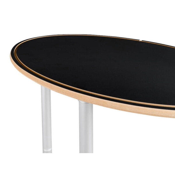 De prints zijn eenvoudig verwisselbaar en worden bevestigd met siliconen tape, waarbij de installatie letterlijk maar seconden in beslag hoeft te nemen. Het houten bovenblad en het metalen frame zorgen voor optimale stabiliteit en een robuuste constructie.