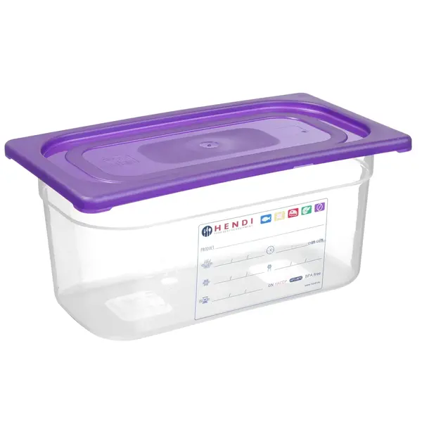 Deze deksel van HENDI is uitgevoerd in reuk- en smaakvrij paars polypropyleen met een temperatuurbestendigheid van -40°C tot 80°C. De deksel is paars gekleurd om allergenen duidelijk volgens HACCP richtlijnen aan te geven. Het deksel past perfect op de HACCP voedseldozen van HENDI en andere polypropyleen bakken in dezelfde GN-maat.