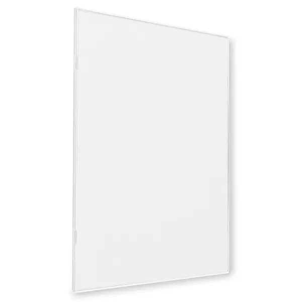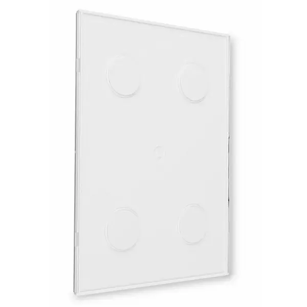 De houder is voorzien van een wit kunststof frame waarin de frontplaat van plexiglas met clips is bevestigd, wat niet alleen zorgt voor een nette en verzorgde presentatie, maar ook voor eenvoudig verwisselen van de inhoud. En montage is eenvoudig dankzij de vooraangebrachte zelfklevende tape op meerdere punten op de achterzijde.