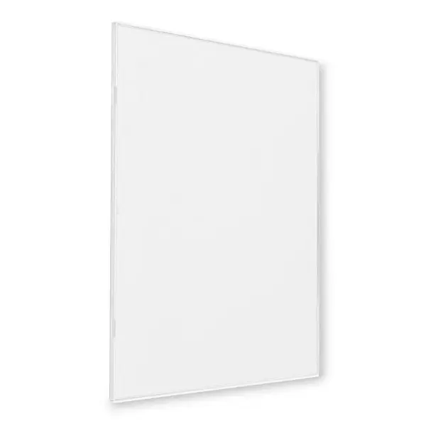 De houder is voorzien van een wit kunststof frame waarin de frontplaat van plexiglas met clips is bevestigd, wat niet alleen zorgt voor een nette en verzorgde presentatie, maar ook voor eenvoudig verwisselen van de inhoud. En montage is eenvoudig dankzij de vooraangebrachte zelfklevende tape op meerdere punten op de achterzijde.