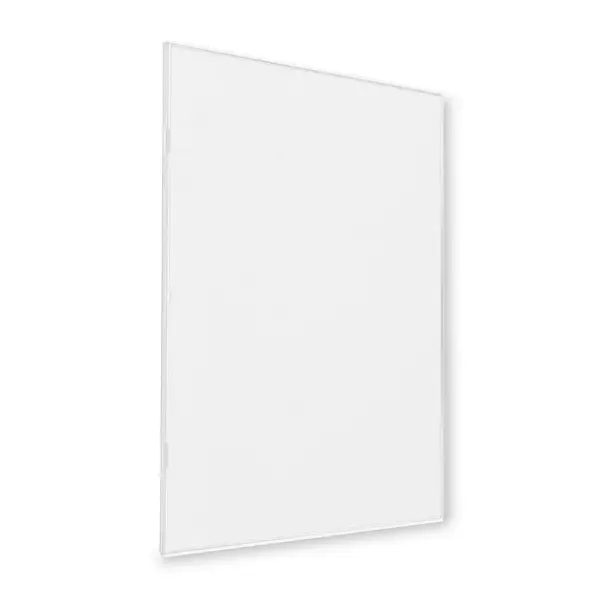 De houder is voorzien van een wit kunststof frame waarin de frontplaat van plexiglas met clips is bevestigd, wat niet alleen zorgt voor een nette en verzorgde presentatie, maar ook voor eenvoudig verwisselen van de inhoud. En montage is eenvoudig dankzij de vooraangebrachte zelfklevende tape op meerdere punten op de achterzijde.