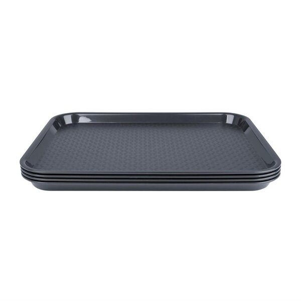 Rust je school, fastfoodrestaurant of cafetaria uit met zeer functionele en betrouwbare dienbladen, met behulp van de houtskoolkleurige Olympia KRISTALLON grote polypropyleen fastfood dienbladen. Met een gestructureerd oppervlak helpt het dienblad te voorkomen dat eten en drinken wegglijden tijdens het dragen, waardoor het risico op morsen en vallen wordt verminderd. Het dienblad is gemaakt van hoogwaardig polypropyleen en is ongelooflijk sterk en slijtvast en garandeert een uitstekende levensduur. Het polypropyleen materiaal maakt het schoonmaken ook gemakkelijk, waardoor een snelle doorlooptijd mogelijk is tijdens drukke diensten. De trays zijn ook zo ontworpen dat ze op elkaar kunnen worden gestapeld, wat een ruimtebesparende opslag mogelijk maakt.
