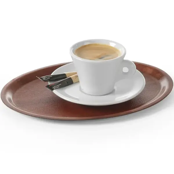 Het AmerBox antislip ovale dienblad is ontworpen voor duurzaamheid en betrouwbaarheid in professionele horecagelegenheden. De stevige laminaatbehuizing, gecombineerd met een rubberen antisliplaag, zorgt voor stabiliteit bij het dragen van voedsel en dranken, waardoor het risico op morsen wordt verminderd. Het dienblad is bestand tegen slijtage, chemicaliën, vlekken en krassen, wat zorgt voor langdurig gebruik en veilig vervoer van voedsel en drinken.