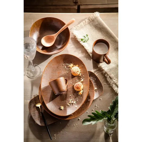 De TEXTURE DARK serie van Inspire kenmerkt zich door zachte, organische vormen in combinatie met een verfijnd, natuurlijk geometrisch patroon. De diepe bruine aardetint zorgt voor een warme en elegante uitstraling die naadloos aansluit bij diverse interieurstijlen. Vervaardigd uit 100% porselein en afgewerkt met een hoogwaardige matte glazuurlaag.