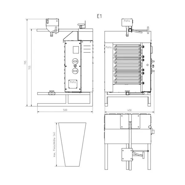 Bovendien zijn er diverse accessoires en toebehoren voor de Potis STANDARD dönergrills beschikbaar, zoals zijschermen en dönerscheppen in verschillende formaten!