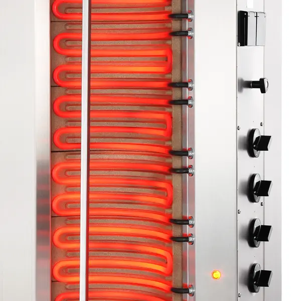 Dönergrill | STANDARD | Elektrisch | 7 Elementen (Keramisch) | 10.5kW (400V) | Max. 80kg | Rotatiemotor Boven | 550x710x1290(h)mm