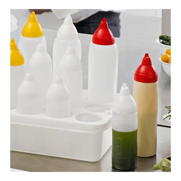 De doseerflessen-organizer van Araven zorgt voor een nette en overzichtelijke presentatie van sauzen en dressings. Het praktische ontwerp houdt de flessen stabiel en binnen handbereik, waardoor het perfect is voor keukens, werkstations en buffetten. De organizer heeft een 1/2 GN-maat en beschikt over 8 gaten in totaal: 5 met een diameter van 60 mm en 3 met een diameter van 75 mm, zodat de flessen stevig op hun plek blijven. Gemaakt van polypropyleen, is de organizer BPA-vrij, koudbestendig tot -40°C en hittebestendig tot 95°C, waardoor hij geschikt is voor uiteenlopende keukenomstandigheden.