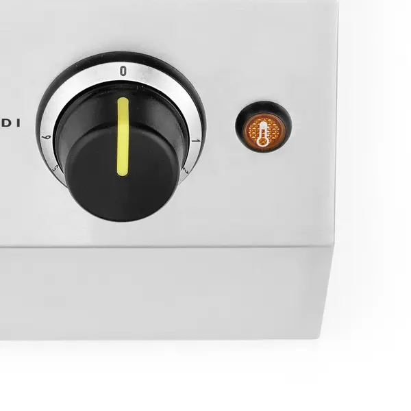 Het apparaat heeft een temperatuurbereik van 30°C/65°C dat eenvoudig in 6 stappen is in te stellen met de stevige draaiknop, zodat de juiste temperatuur naar wens kan worden ingesteld of bijvoorbeeld chocolade op basis van de ingestelde temperatuur dunner of dikker kan worden geserveerd. Het controlelampje naast de draaiknop, voor constant inzicht in de status van het apparaat, zorgt daarbij samen met de oververhittingsbeveiliging voor extra veiligheid.