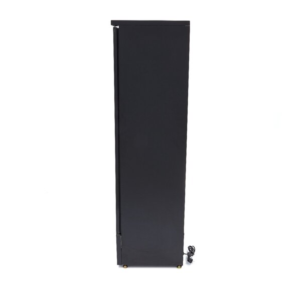 Deze zwarte drankenkoeling is ideaal voor horecazaken met beperkte ruimte. De hoge drankenkoeling met één klapdeur biedt voldoende capaciteit om flessen en blikjes koel te bewaren en professioneel te presenteren dankzij de ingebouwde LED-verlichting. De binnenkant is voorzien van een aluminium beschermlaag en de vijf roosters zijn van RVS en in hoogte verstelbaar. Het koelsysteem met ventilator zorgt voor een gelijkmatige temperatuur en een unieke koelcyclus voorkomt ijsvorming. De temperatuur is digitaal instelbaar tussen 0° en +10° Celsius. De drankenkoeling is eenvoudig te reinigen en dankzij de zwenkwielen makkelijk te verplaatsen.