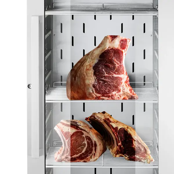 De HENDI dry aging kasten creëren een gecontroleerde omgeving waarin vlees kan drogen, wat resulteert in uitzonderlijk mals en smakelijk vlees. De kast is ontworpen om het microklimaat, dat is vereist voor traditionele natuurlijke rijping, perfect na te bootsen. Tegelijkertijd zorgt de geavanceerde technologie voor een optimale controle over het proces door constante ventilatie, instelbare luchtvochtigheid (60-85%) en interne sterilisatie.