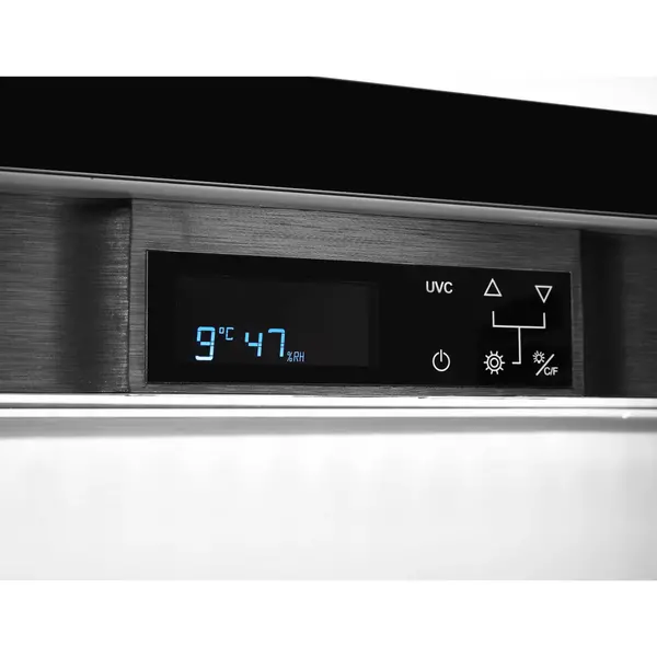 Het apparaat is voorzien van geforceerde klimaatbeheersing, voor optimale luchtverdeling en snel temperatuurherstel na openen, met een temperatuurbereik van +1°C/+25°C, eenvoudige digitale bediening met soft-touchknoppen en helder LED-display achter de deur.
