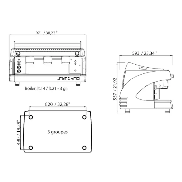 Espressomachine | SYNCHRO RS | Zwart | Automatisch | 3 Groepen | Boiler 21L | Digitaal | 400V | 971x593x557(h)mm