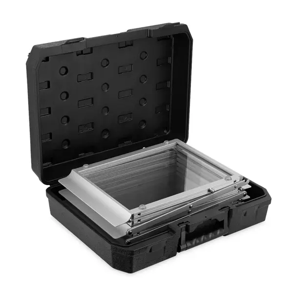 Het uitklappen van de standaard is heel eenvoudig en kan zonder gereedschap, door het praktische vouwsysteem met vergrendeling. Het kleine opgevouwen formaat en de bijgeleverde kunststof koffer maken opbergen en vervoeren daarbij makkelijk en veilig. Dit maakt de folderstandaard ideaal voor gebruik op beurzen, maar ook in bijvoorbeeld winkels, hotels, restaurants!