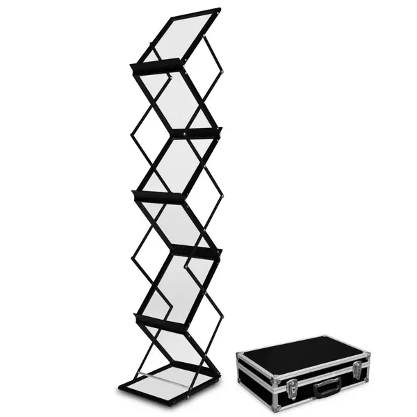 Folderstandaard | MONTANA | Staal/Aluminium | Zwart | Opvouwbaar | Dubbelzijdig | 6x A4 | Incl. Koffer | 260x370x1500(h)mm