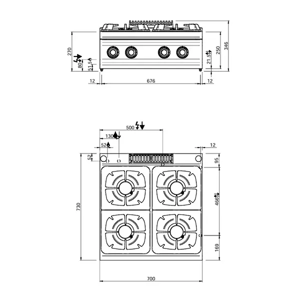 Fornuis | DOMINA PRO 700 | Gas | 4 Branders (4x 7kW) | Waakvlam | 700x730x250(h)mm