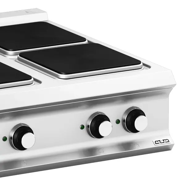 Dit tafelmodel elektrische fornuis heeft een behuizing in hoge kwaliteit RVS, beschikt over 4 verhoogde vierkante kookpunten van 300 x 300 mm, die waterdicht in het oppervlak zijn verwerkt.