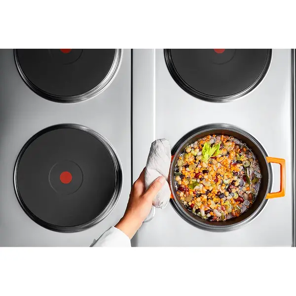 Daarnaast zorgen de indicatorlampjes naast de knoppen dat je duidelijk kunt zien of een kookpunt is ingeschakeld of niet, voor meer veiligheid, en heeft het fornuis per 2 kookpunten een diepgetrokken vetopvangschaal voor eenvoudiger reinigen.