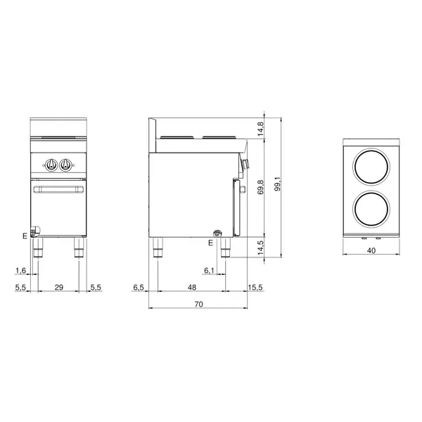 Fornuis | FUN 700 | Elektrisch | 2 Kookpunten (Ø220) | 5.2kW (400V) | Open Onderkast | 400x700x843/991(h)mm