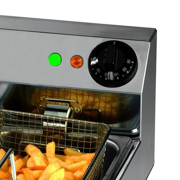 Verder heeft de friteuse een temperatuurbereik van 70°C/180°C met analoge bediening en veiligheidsthermostaat. Bovendien wordt de friteuse standaard met manden en deksels geleverd!