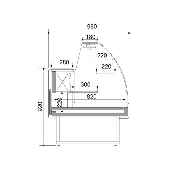 Gebak-Koeltoonbank | VERONA | +4°C/+6°C | Statisch | 0.33kW | Kantelruit | Ladensysteem | 1400x980x1237(h)mm