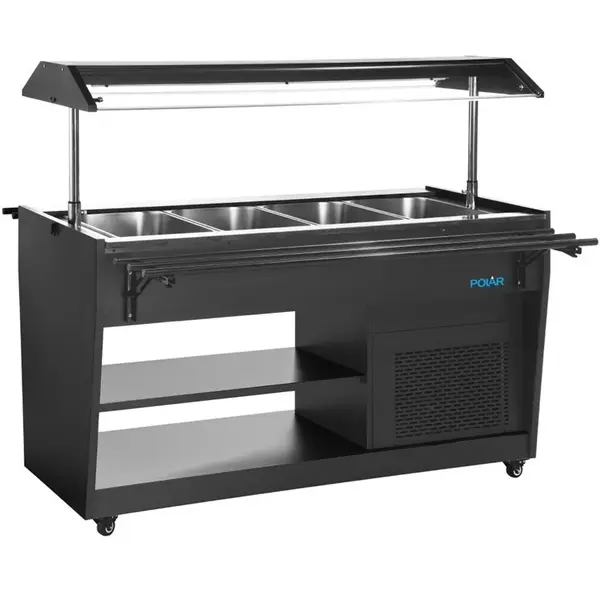 Het Polar G-SERIE gekoelde buffet is perfect voor zelfbedieningsruimtes en zorgt ervoor dat gerechten koel blijven en aantrekkelijk worden gepresenteerd. Dankzij het hoge capaciteitsontwerp kunnen gasten altijd uit een ruime selectie kiezen, terwijl verstelbare dienbladgeleiders en energiezuinige LED-verlichting de toegang tot salades, fruit of desserts eenvoudig maken.